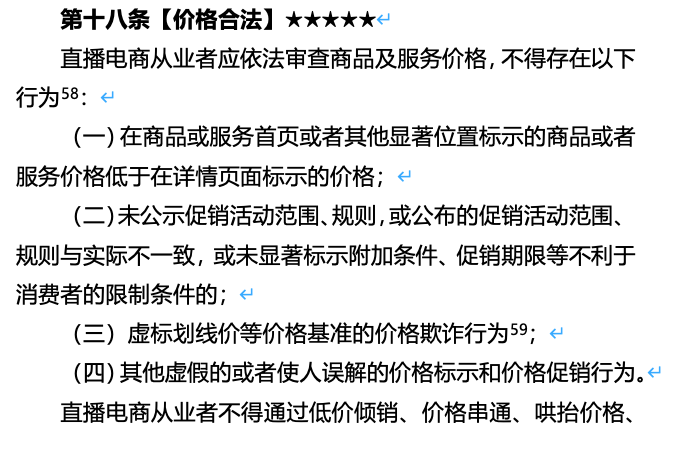 第十八条直播电商从业者应依法审查商品及服务价格,不得存在在商品或服务首页或者其他显著位置标示的商品或者服务价格,低于在详情页面标示的价格等行为。